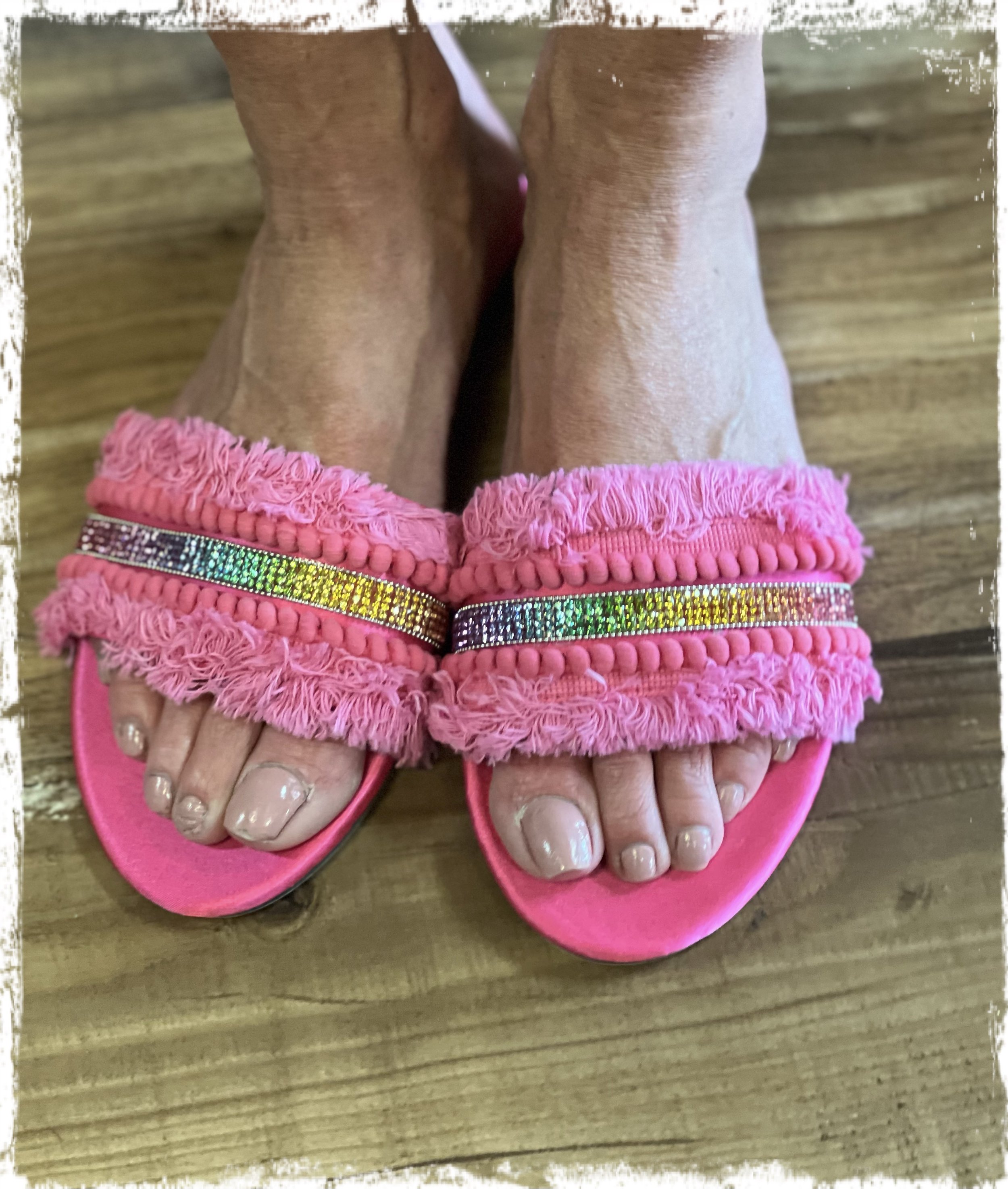 Pink Sandal with Multi Colored Crystals